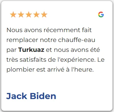 Nous avons récemment fait remplacer notre chauffe-eau par Turkuaz et nous avons été très satisfaits de l'expérience. Le plombier est arrivé à l'heure.